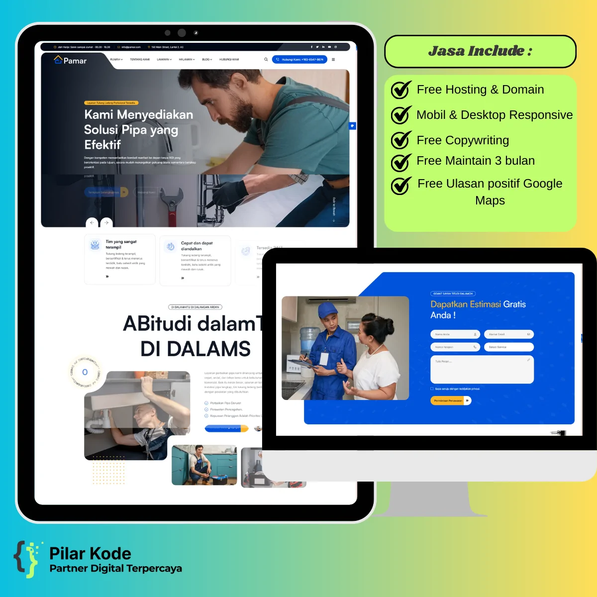 Ingin usaha jasa instalasi pipa atau tukang ledeng Anda tampil lebih profesional dan kebanjiran orderan dari Google? Pilar Kode siap membantu Anda membangun aset digital yang konversinya tinggi!