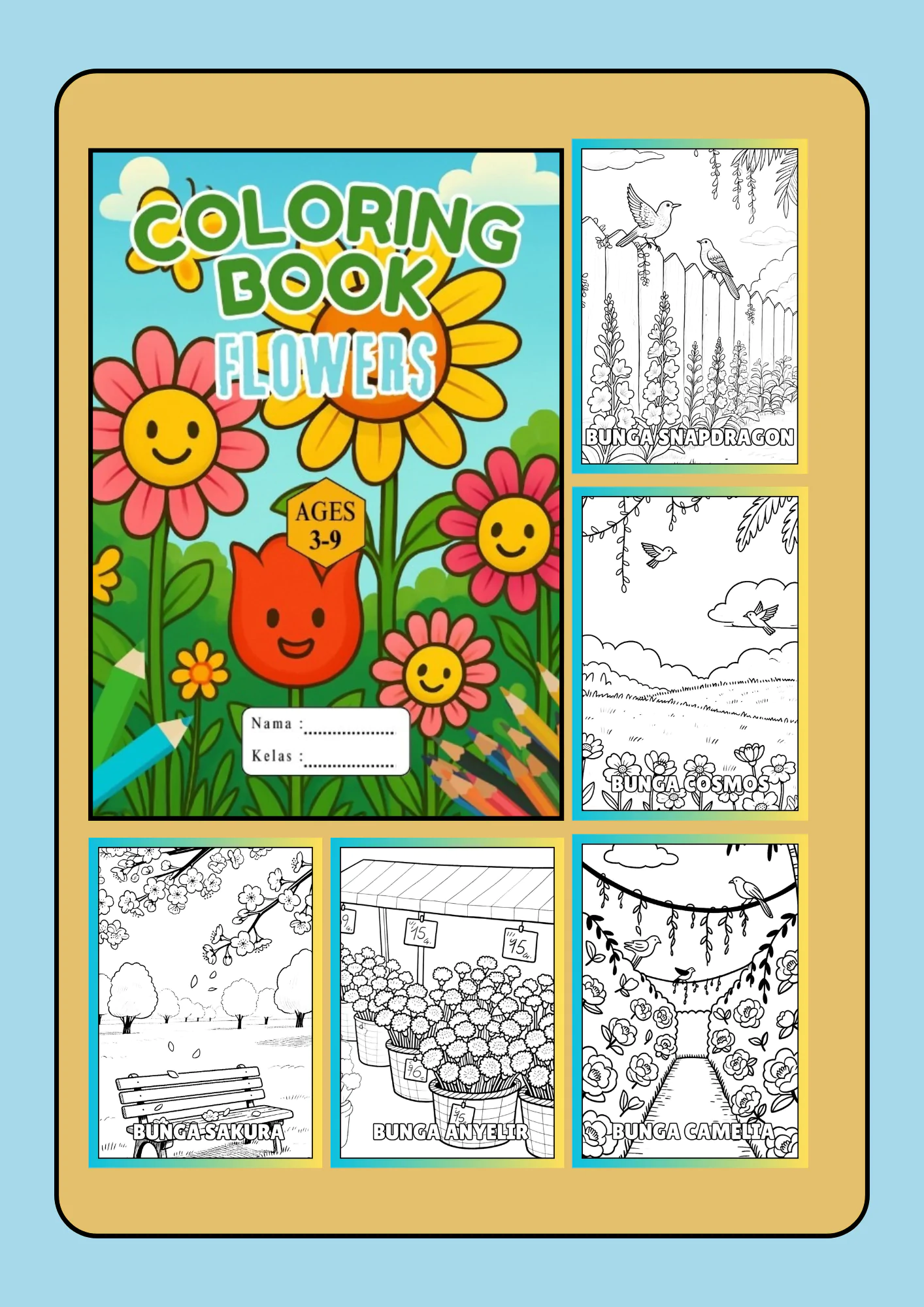 Cocok untuk aktivitas di rumah, sekolah, atau saat liburan. Yuk, temani anak mewarnai sambil mengenal nama-nama bunga!