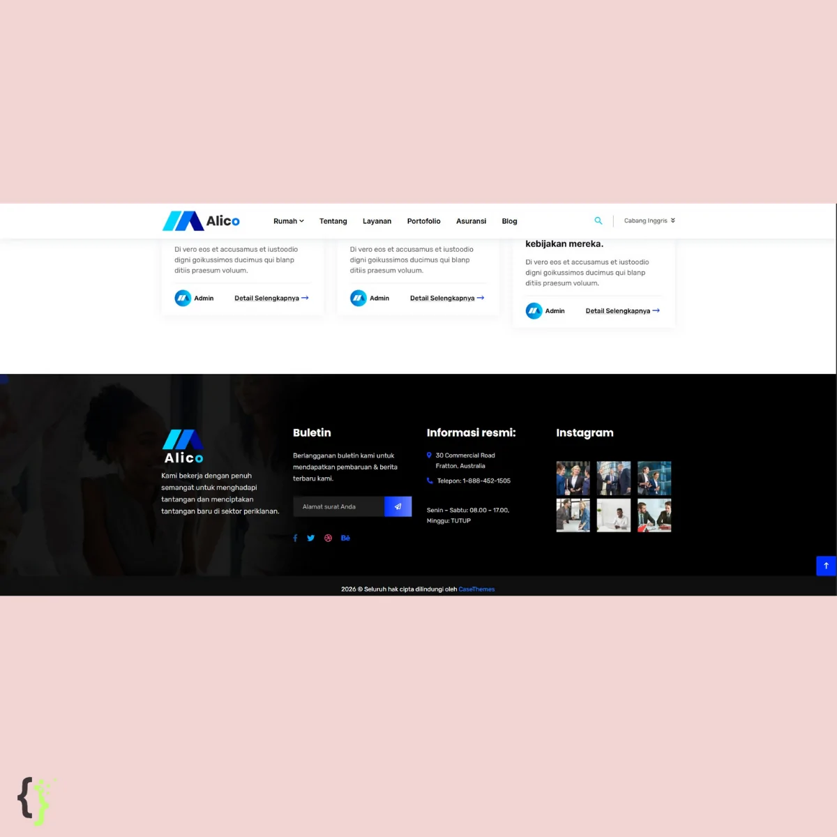 Sistem Lengkap: Header/Menu tetap, kustom footer, dan dukungan multibahasa.