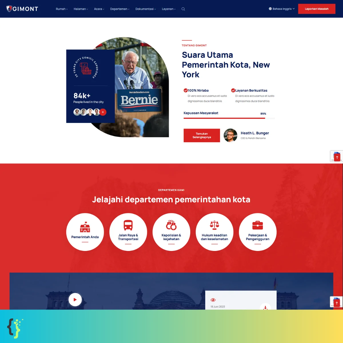 Tingkatkan kredibilitas instansi atau kampanye politik Anda dengan portal digital yang modern dan transparan. Beliscript.com menghadirkan layanan pembuatan website menggunakan sistem GIMONT, yang dirancang khusus untuk Pemerintah Kota, Kotamadya, Lembaga Negara, hingga kebutuhan Kampanye Politik/Caleg.