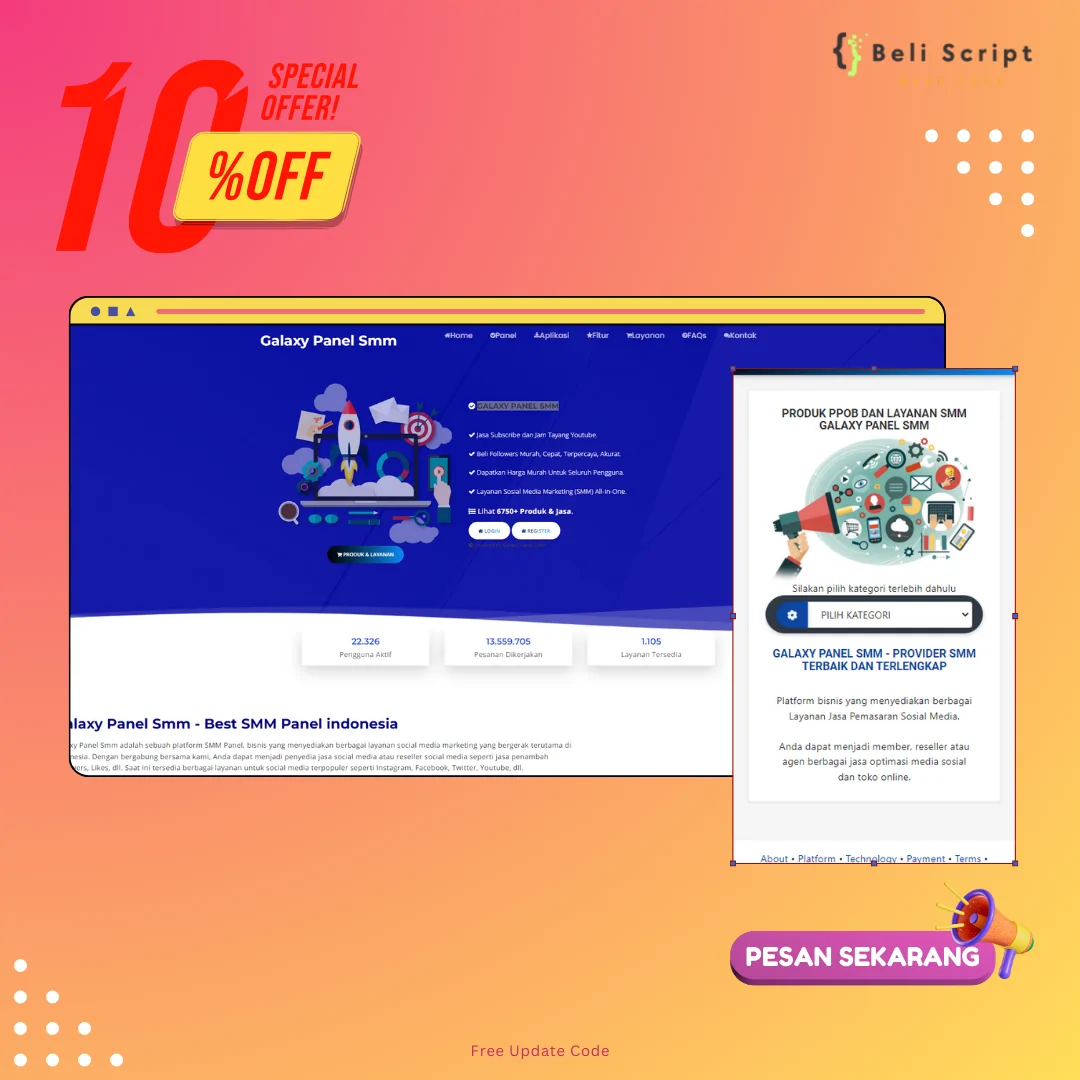 Jangan lewatkan kesempatan emas ini! Dapatkan Script Web Galaxy SMM Panel Full Source Code sekarang dan mulai bangun kerajaan bisnis SMM Anda sendiri!
