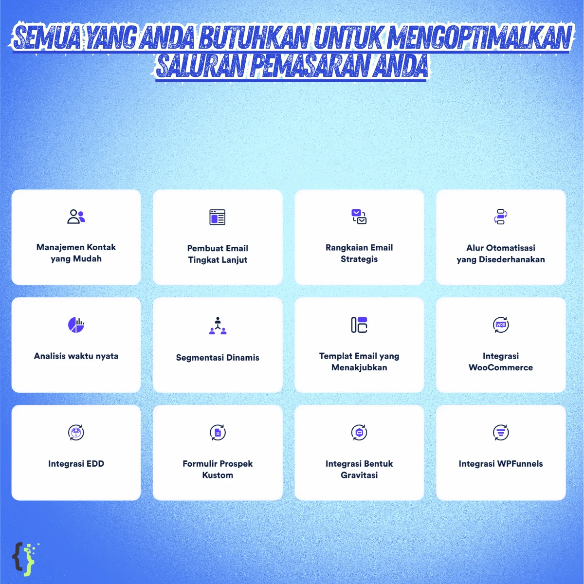 - Drag & Drop Email Builder: Buat desain email profesional tanpa skill desain/coding.