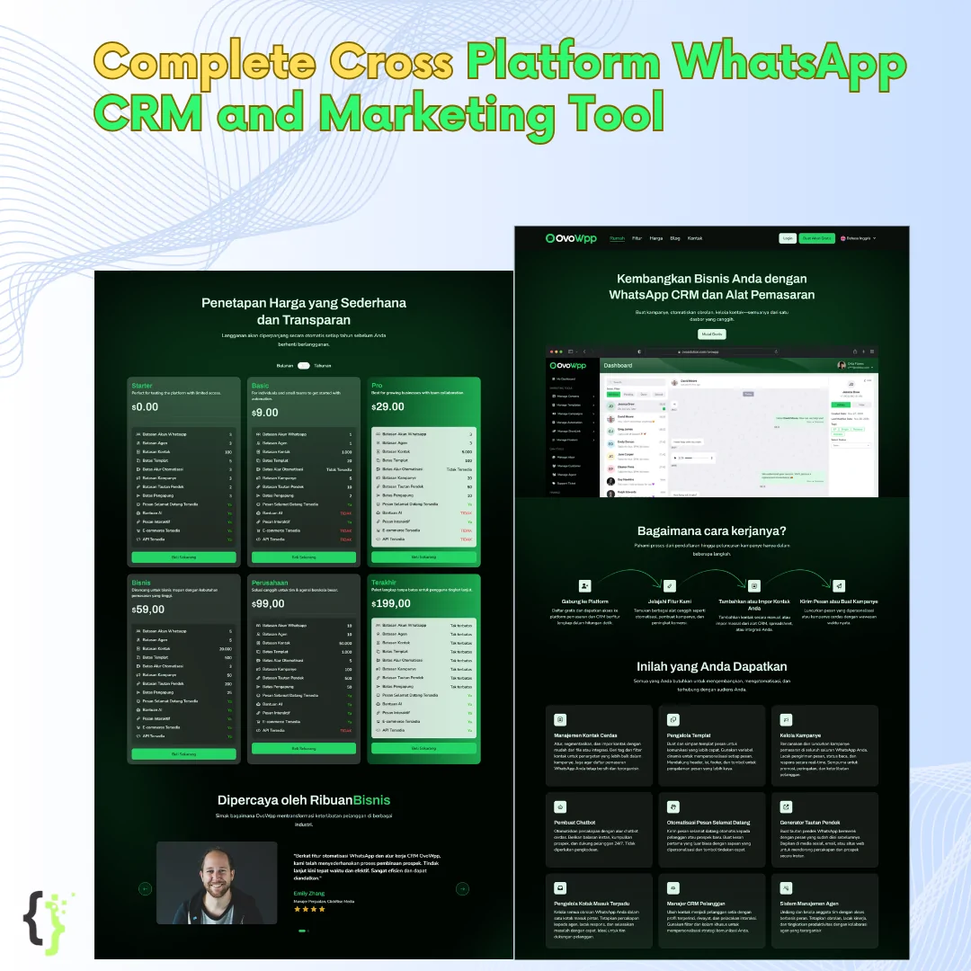 #OvoWpp #WhatsAppCRM #JasaPembuatanWebsite #SaaS #MarketingWhatsApp #ScriptWebsiteMurah #PilarKode #BeliScript #AlatMarketingDigital #JasaSettingWebsite #RemoteService #CRMIndonesia #SoftwareBisnis