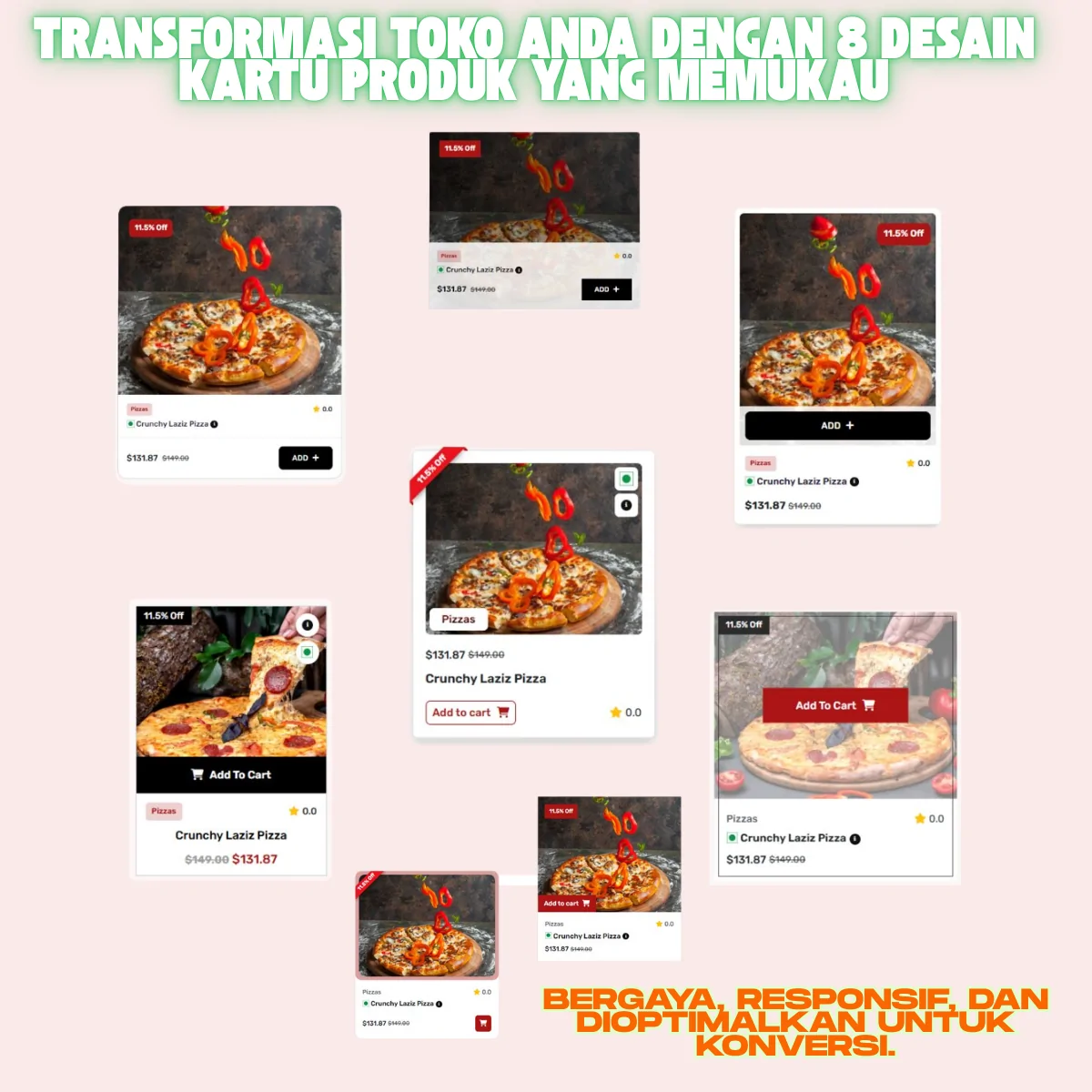 8 Desain Kartu Produk: Bebas pilih tampilan kartu menu yang paling sesuai dengan estetika brand Anda.