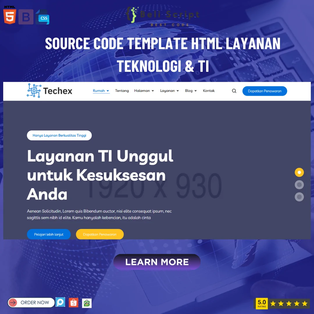 Dengan SOURCE CODE TEMPLATE HTML LAYANAN TEKNOLOGI & TI, Anda bisa mempercepat pengembangan situs web Anda dan memastikan kehadiran online yang kuat dan profesional, siap menjaring lebih banyak klien di dunia digital.